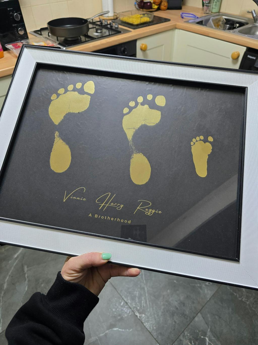 Ordered the moon print for valentines day for my partner, the baby handprints/footprint print and the multiple footprint print for all 3 boys and they have all come out incredibly beautiful and they look stunning on the wall, i would reccpmend and i would order more without a doubt quick easy process and very helpful and attentive thank you 😊