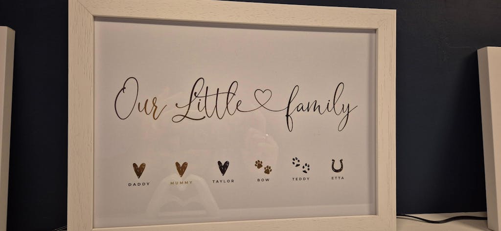 Simply select your print size & whether you want to include a frame. Then fill out all customisations, add your items to the cart and check out.