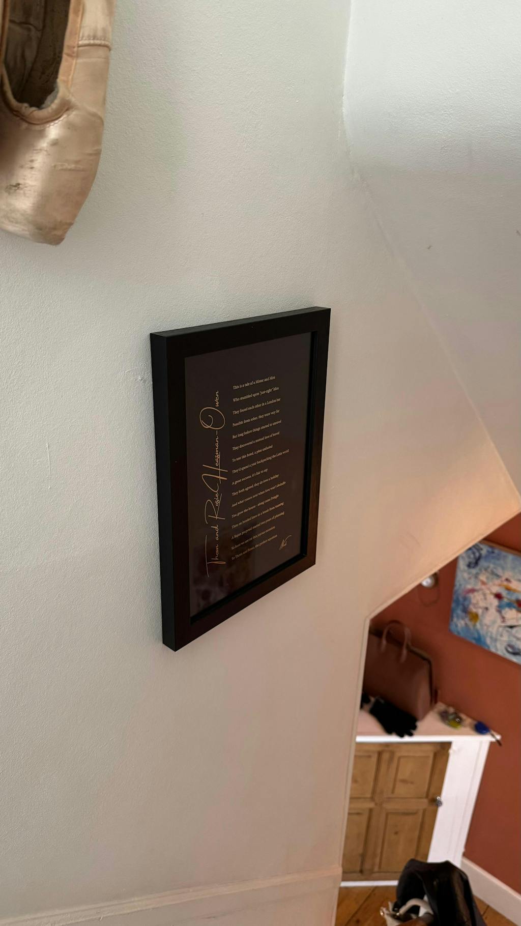 This personalised foil art print is a beautiful and heartfelt gift for any special occasion, such as a wedding anniversary, Valentine's gift or birthday. It features the words of a poem or your own text, turning them into a bespoke piece of art.