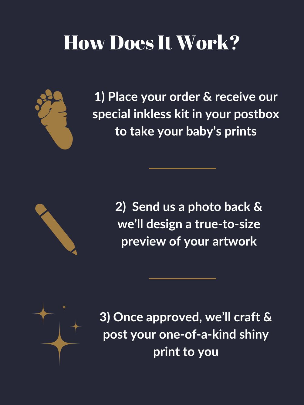 We love love love our print! We’d tried getting hand and foot prints previously but nothing seemed to work and give good prints until we used More Than Foil! Super straight forward, the team were super quick to get back to us with the preview and was able to make changes where needed (we changed paper colour - their edit was perfect). Thank you again for such a great print of such a magical moment for us.